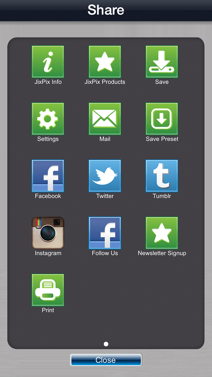 Click on the Share Button to open a variety of different ways to save and share your image.