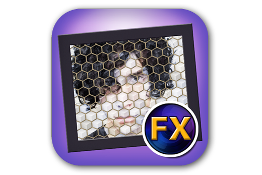 A quick and fast way to create a tiled work of art with control over shape style and size. Easily adjust spacing between the tiled shapes with a handy slider with options to stroke each shape with a colored border. For added variation change the hue for a monochromatic style or choose earth tones for a retro look—the tone and color of your photo is up to you. Finish off the Kyoobik creation with drop shadows for 3d popping dimension.