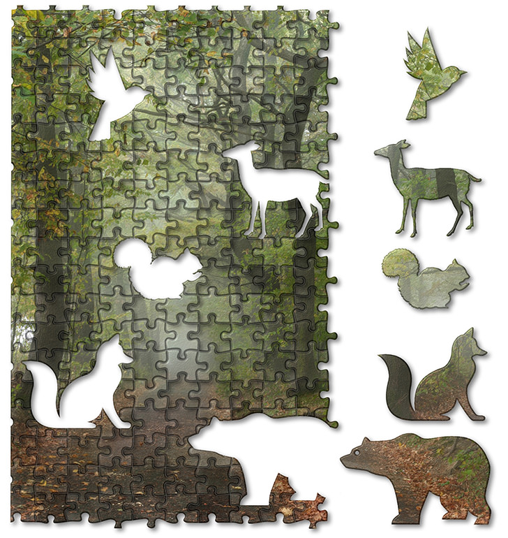 Use Auto Generate to get to the Library of included shapes or import your own using the custom button. Move and Resize Shapes then Apply to cut shapes out of the puzzle. Use the import Photo tool to change the photo on one puzzle piece or groups of them. This technique works great with Text and Logos.